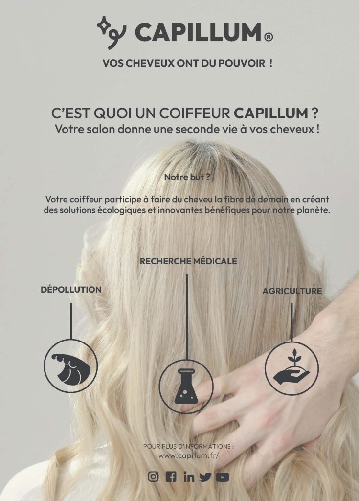 C’est dans cette démarche que le salon est fier d’être partenaire CAPILLUM, un programme innovant de valorisation des cheveux coupés, inscrit dans une logique d’économie et de développement durable.